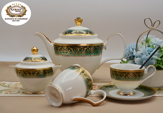 17 PCS High Quality Embossed Gold Luxury Style Coffee & Tea Cup Set