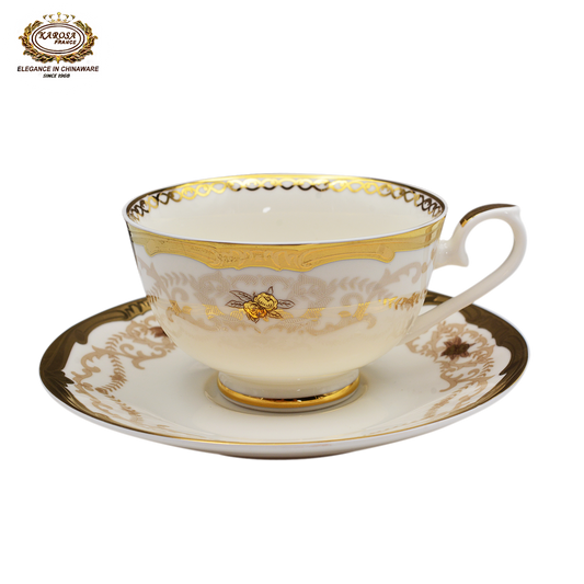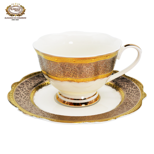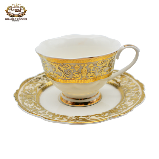 17 PCS Royal Gold Coffee Set Embossed Gold Cup & Saucer Set