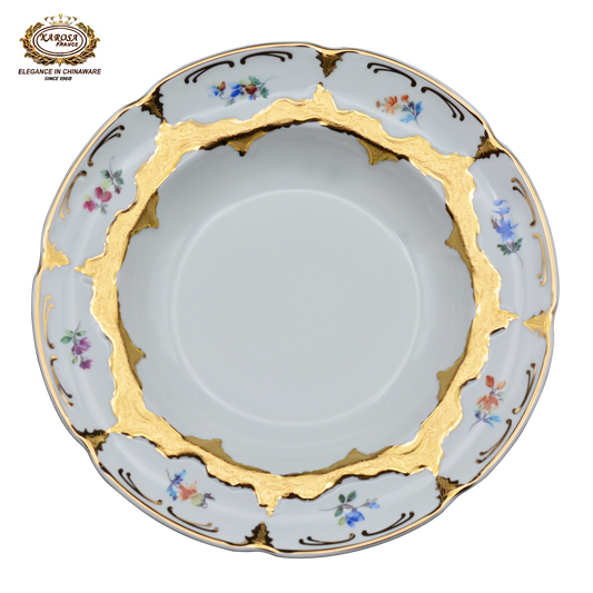 17 PCS Royal Style Embossed Gold Rim Plates & Bowls Set Ceramic Dinner Set Dinnerware