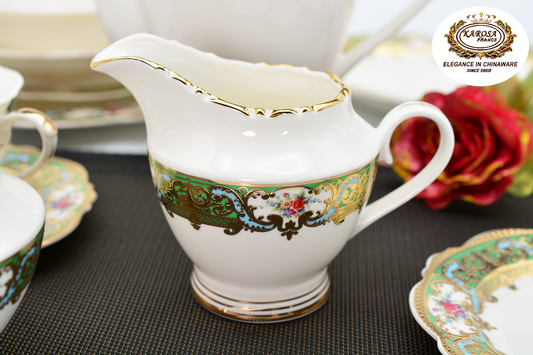 17 PCS Embossed Gold Decoration Fine Bone China Classic Coffee & Tea Cup Set