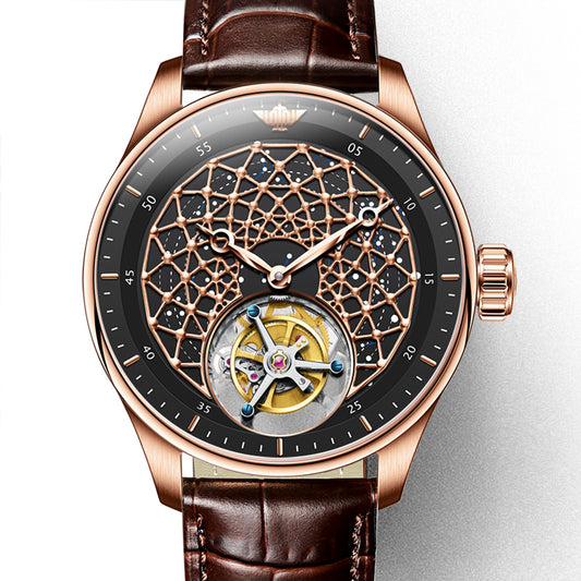 Fashion Mesh Design Tourbillon Business Mechanical Watch Hollow Waterproof Men's Watch