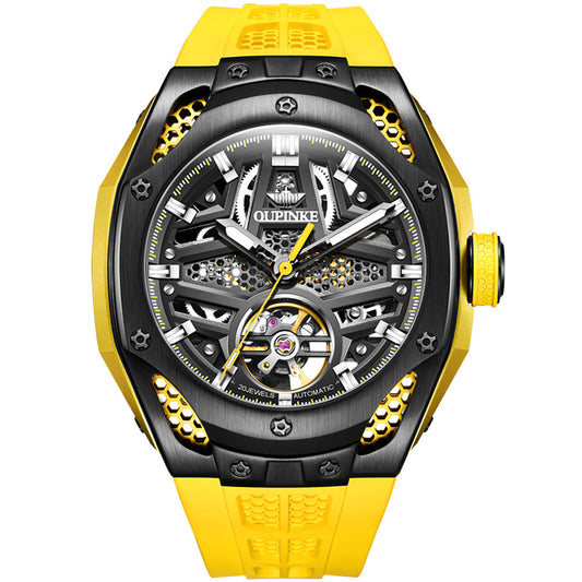 Fashion Hollow Movement Automatic Mechanical Watch Silicone Strap Men's Watch