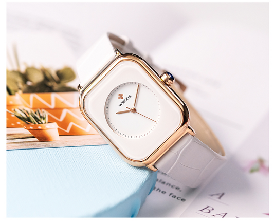 WWOOR Fashion Women Watches White Leather Minimalist Rectangle Ladies Quartz Wristwatch