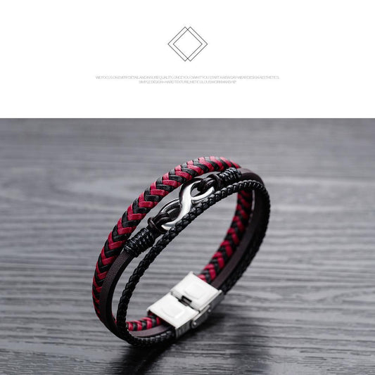 Multi-Layer Braided Leather Cross Bracelets