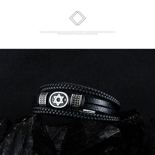 Vintage six-pointed star leather bracelet Fashion braided leather cord bracelet