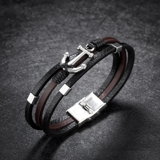 Fashion Anchor Multilayer Titanium Steel Leather Bracelet Vintage Men's Bracelet Leather Bracelet
