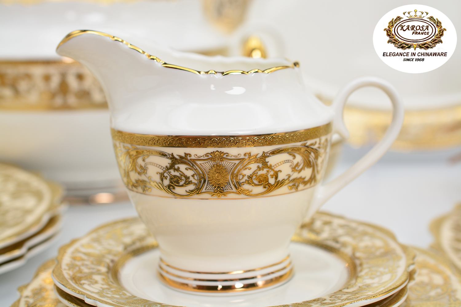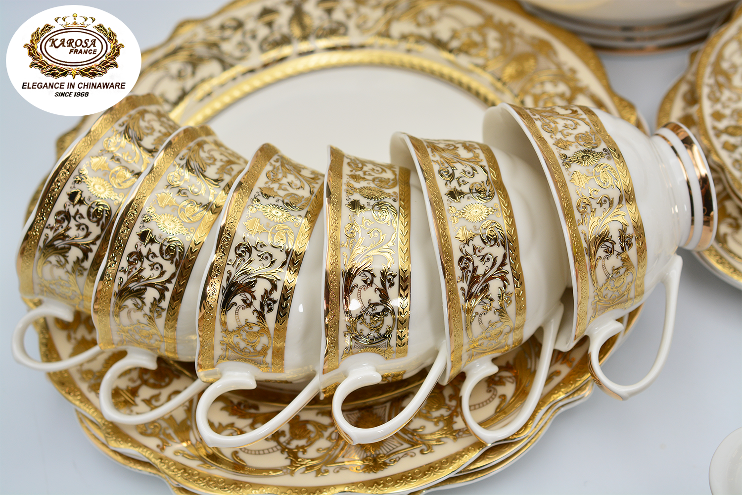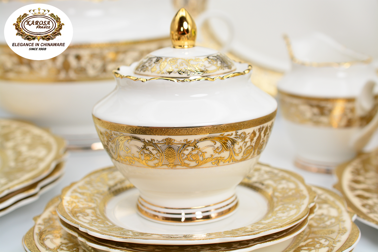 luxury embossed gold tableware royal style fine china dinnerware sets