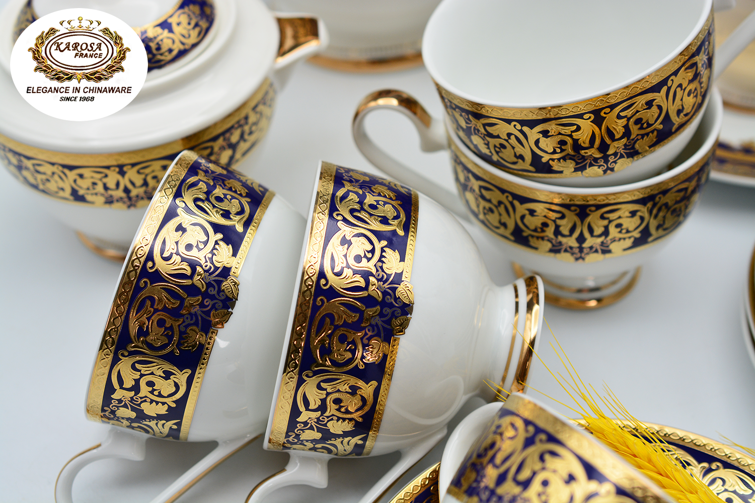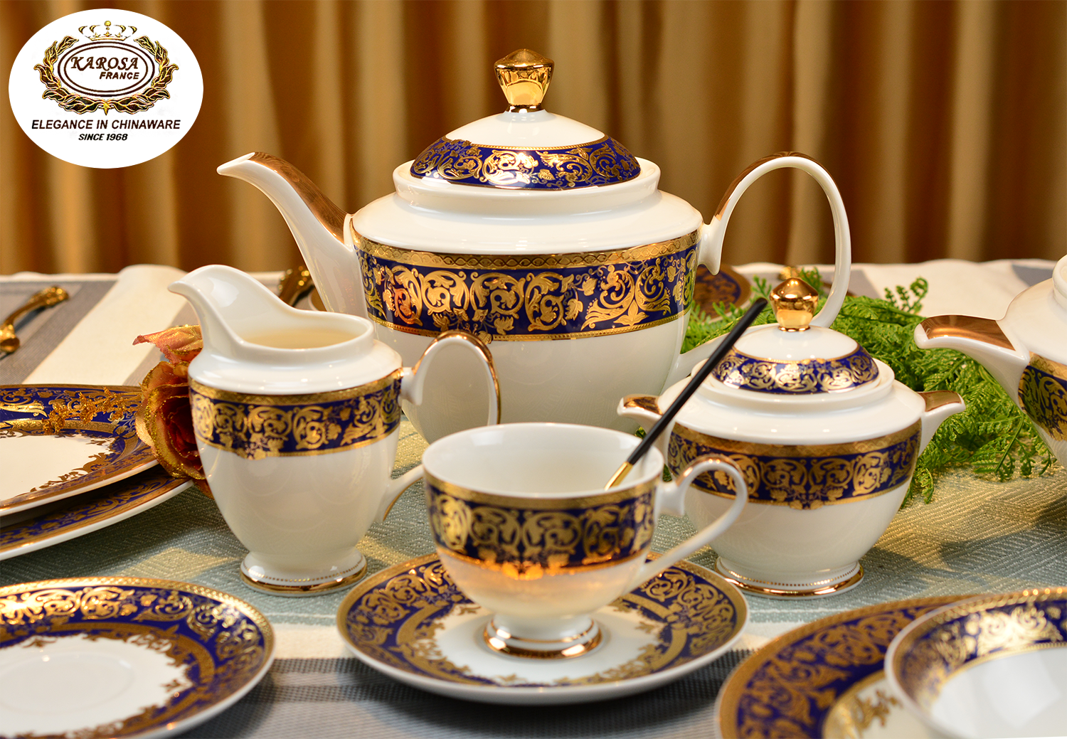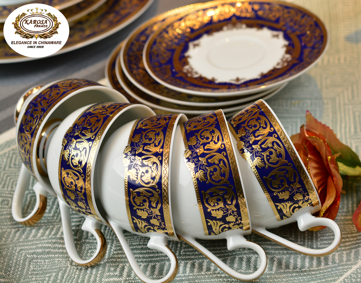 17 PCS Royal Style Embossed Gold Rim Plates & Bowls Set Ceramic Dinner Set Dinnerware