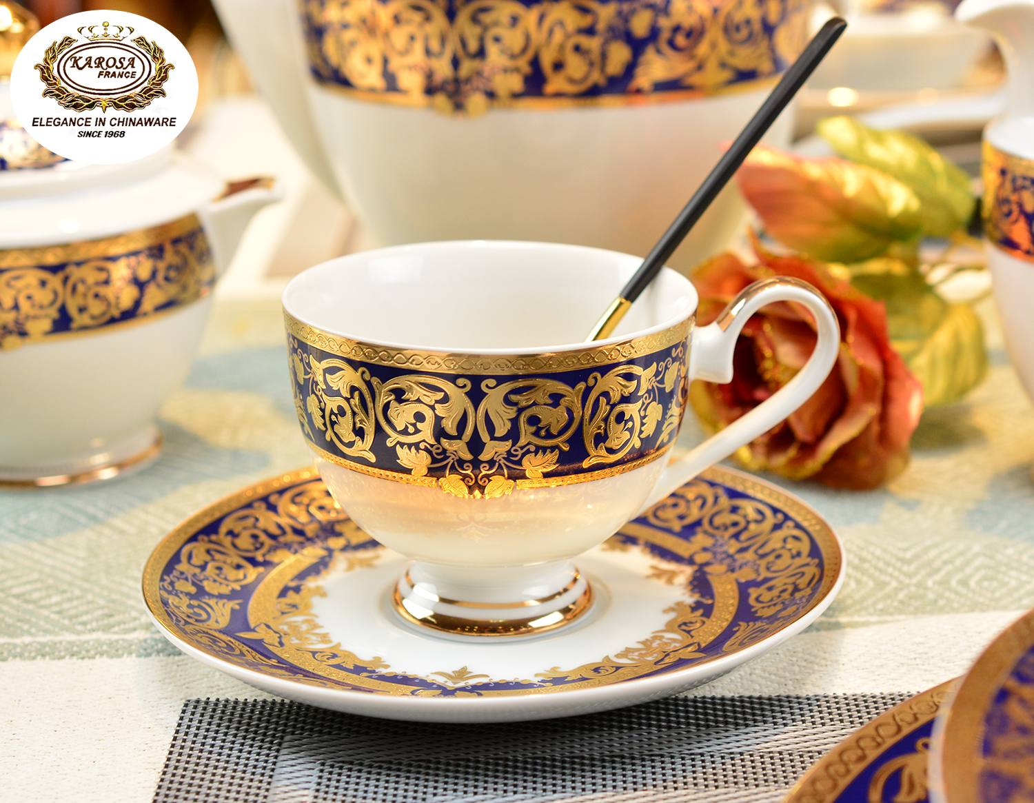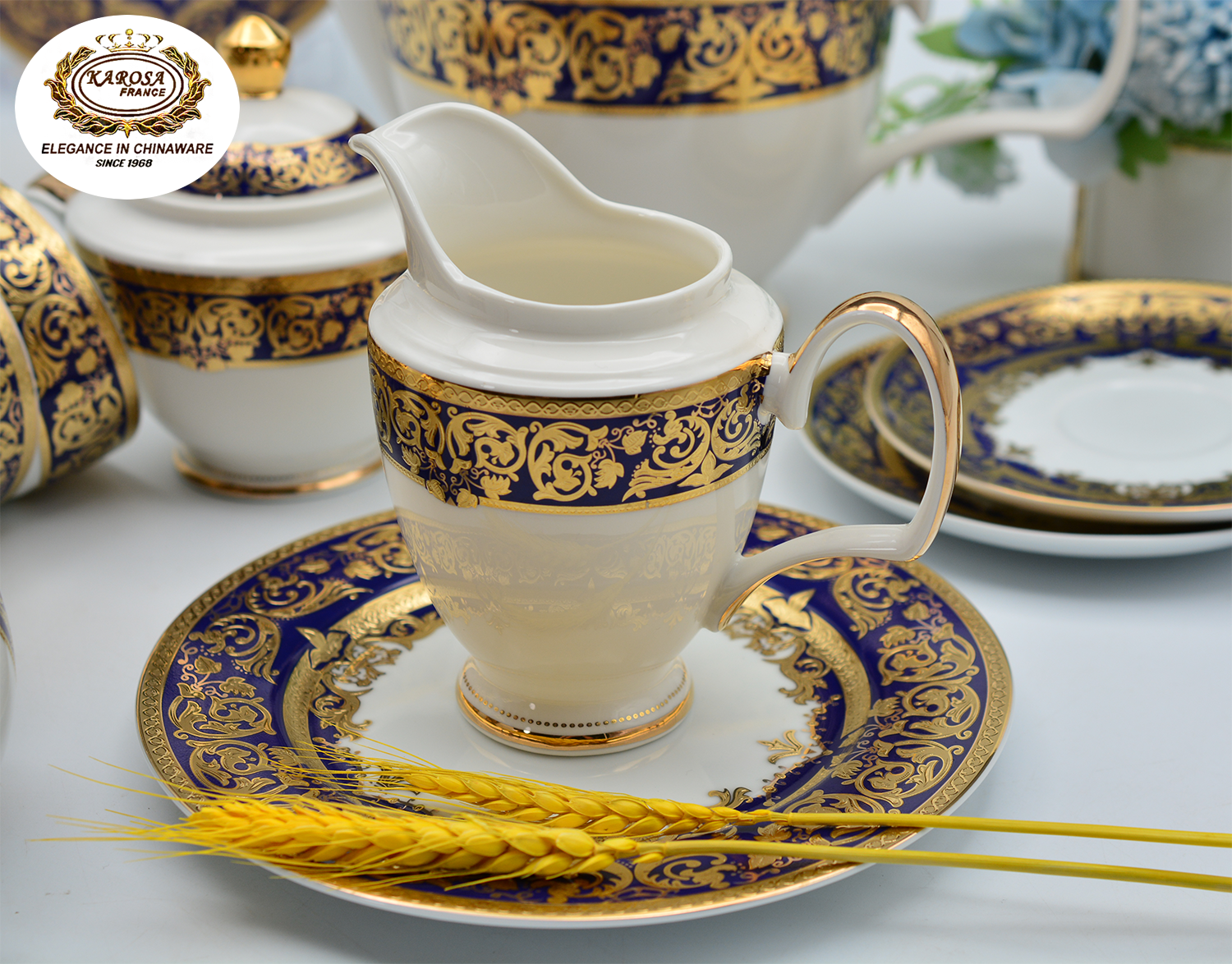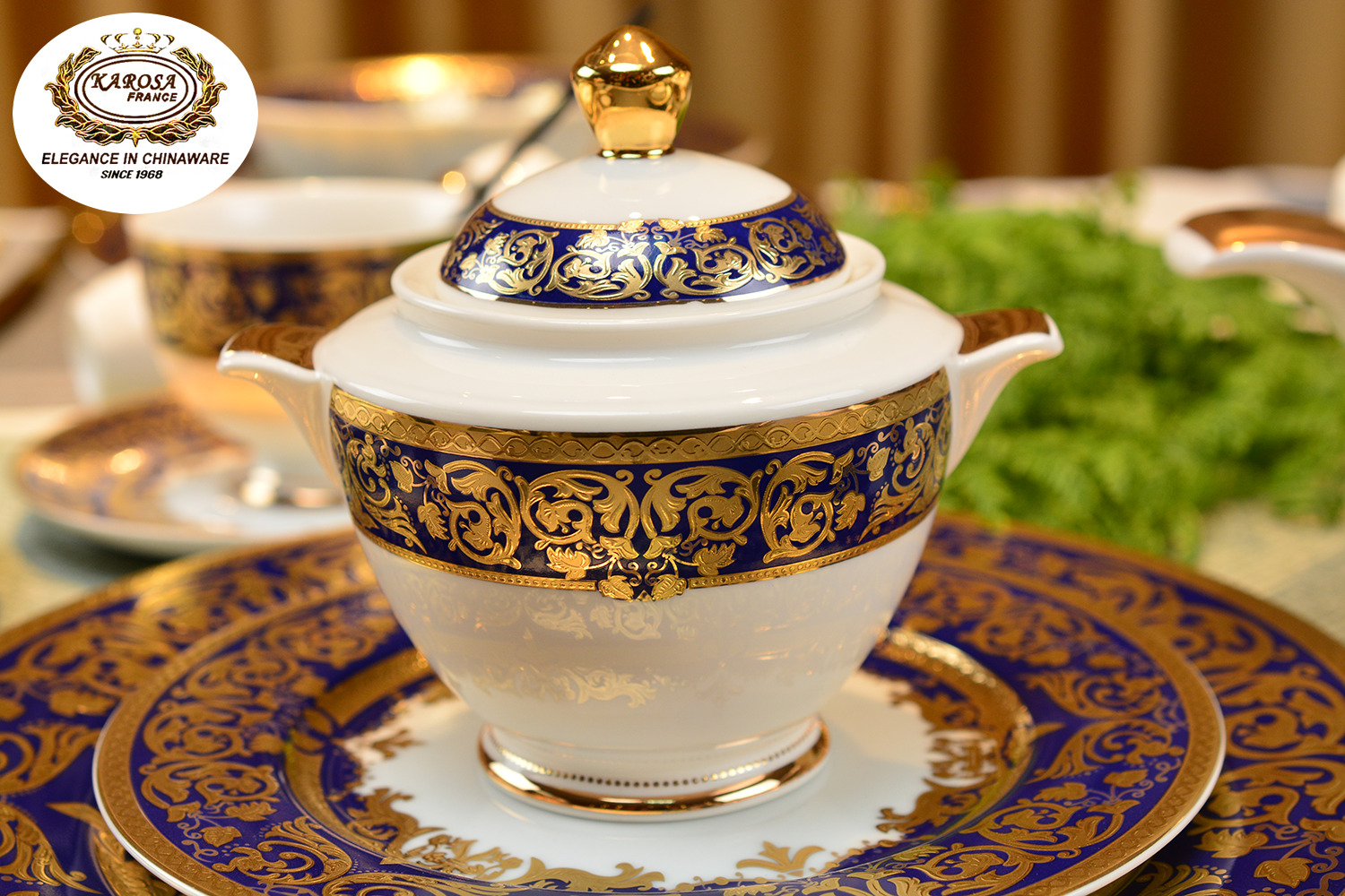 17 PCS Royal Style Embossed Gold Rim Plates & Bowls Set Ceramic Dinner Set Dinnerware