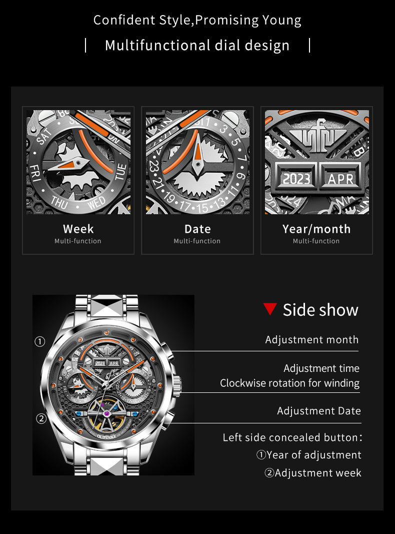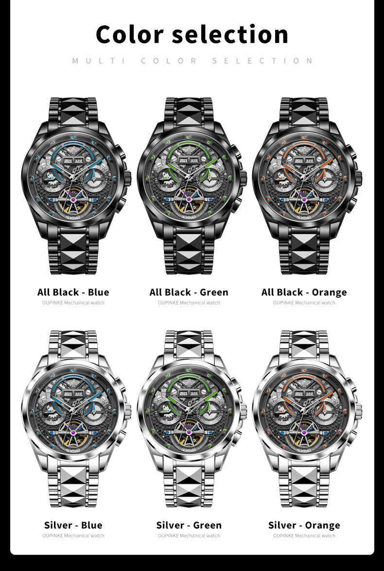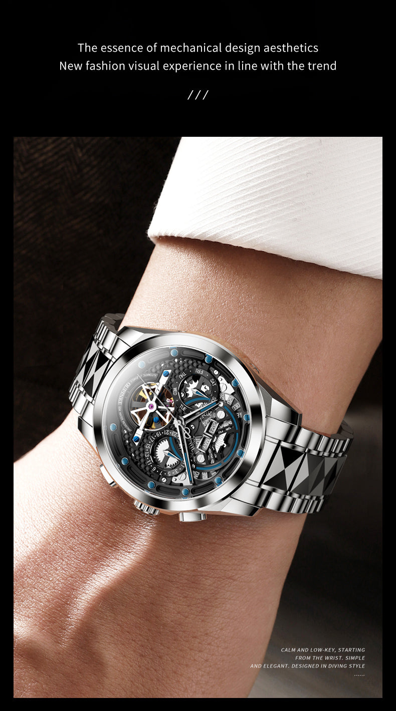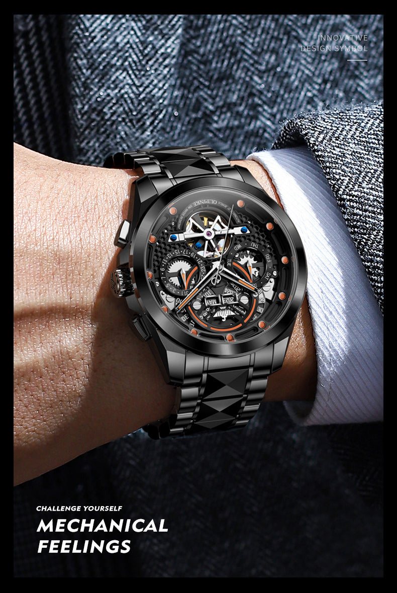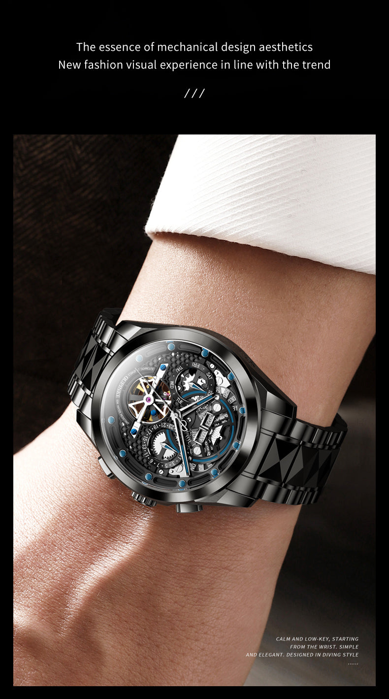 Automatic Mechanical Watch Multi-color Hands Hollow Movement Men's Watch