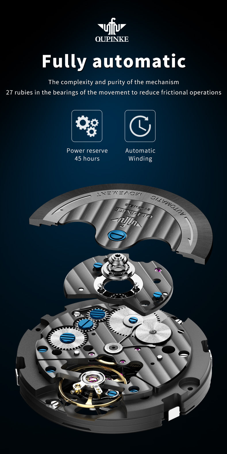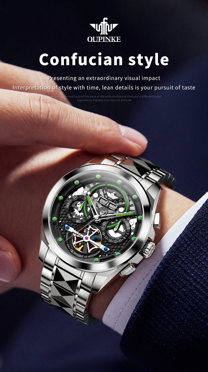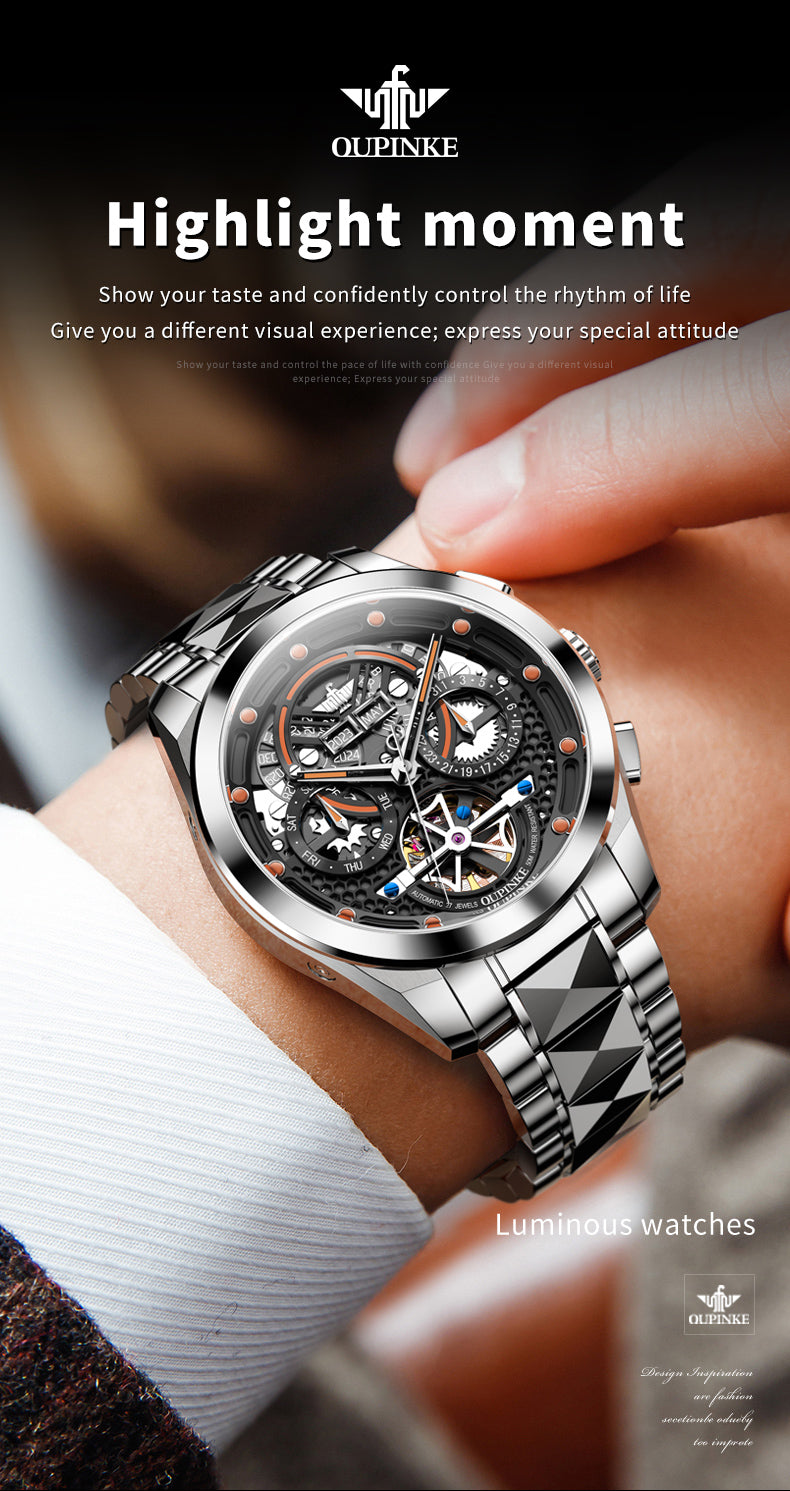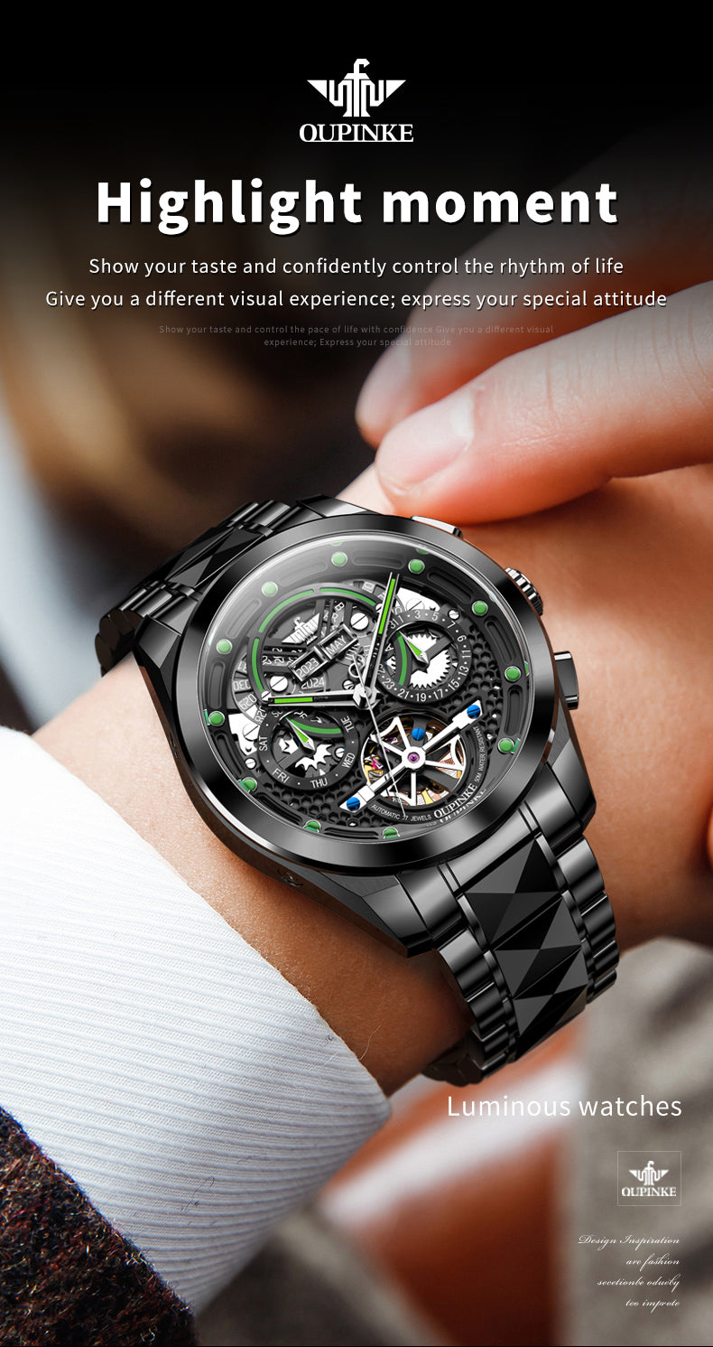Automatic Mechanical Watch Multi-color Hands Hollow Movement Men's Watch