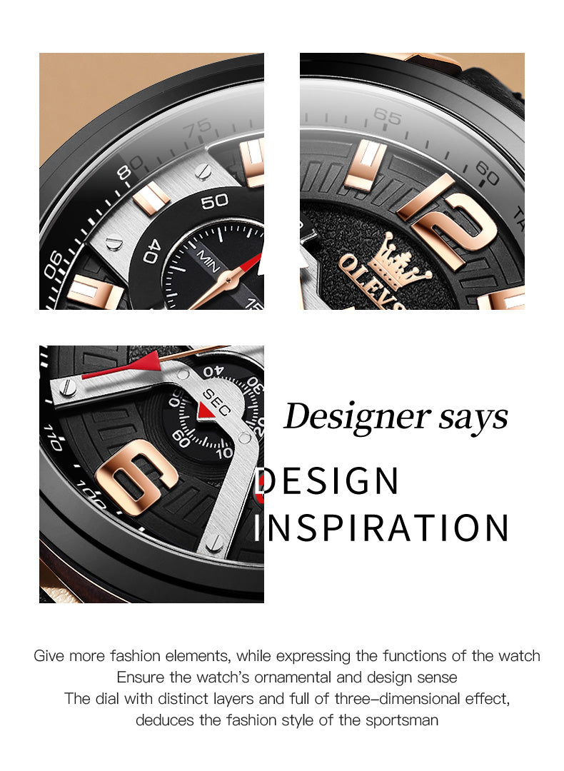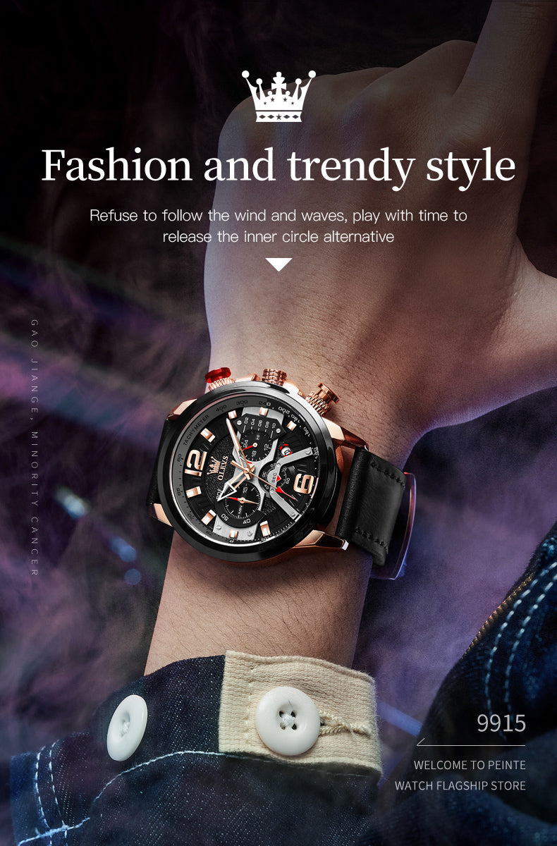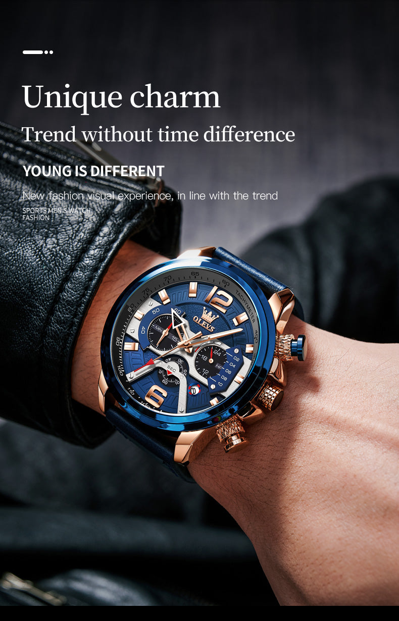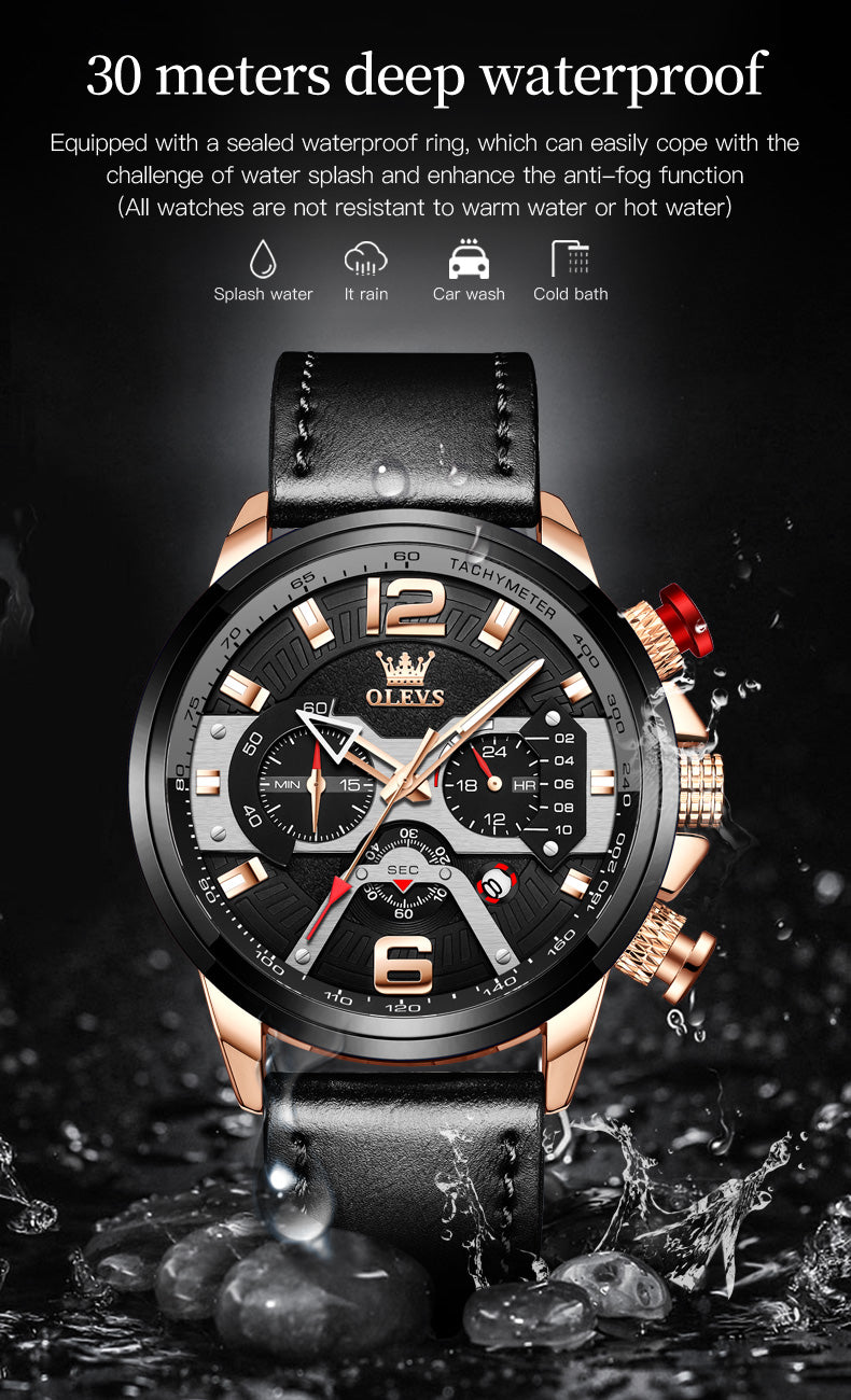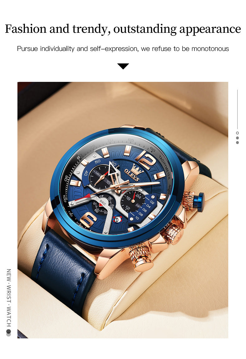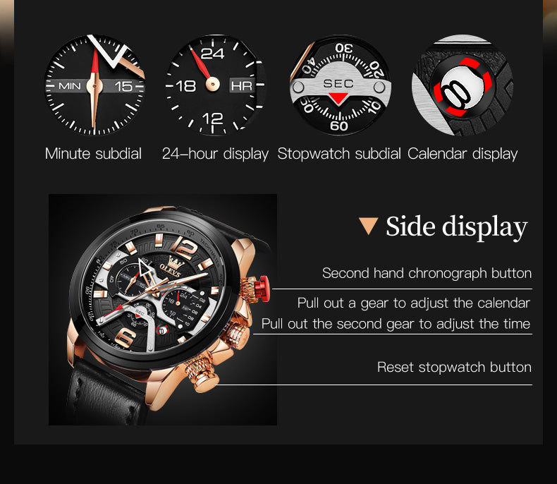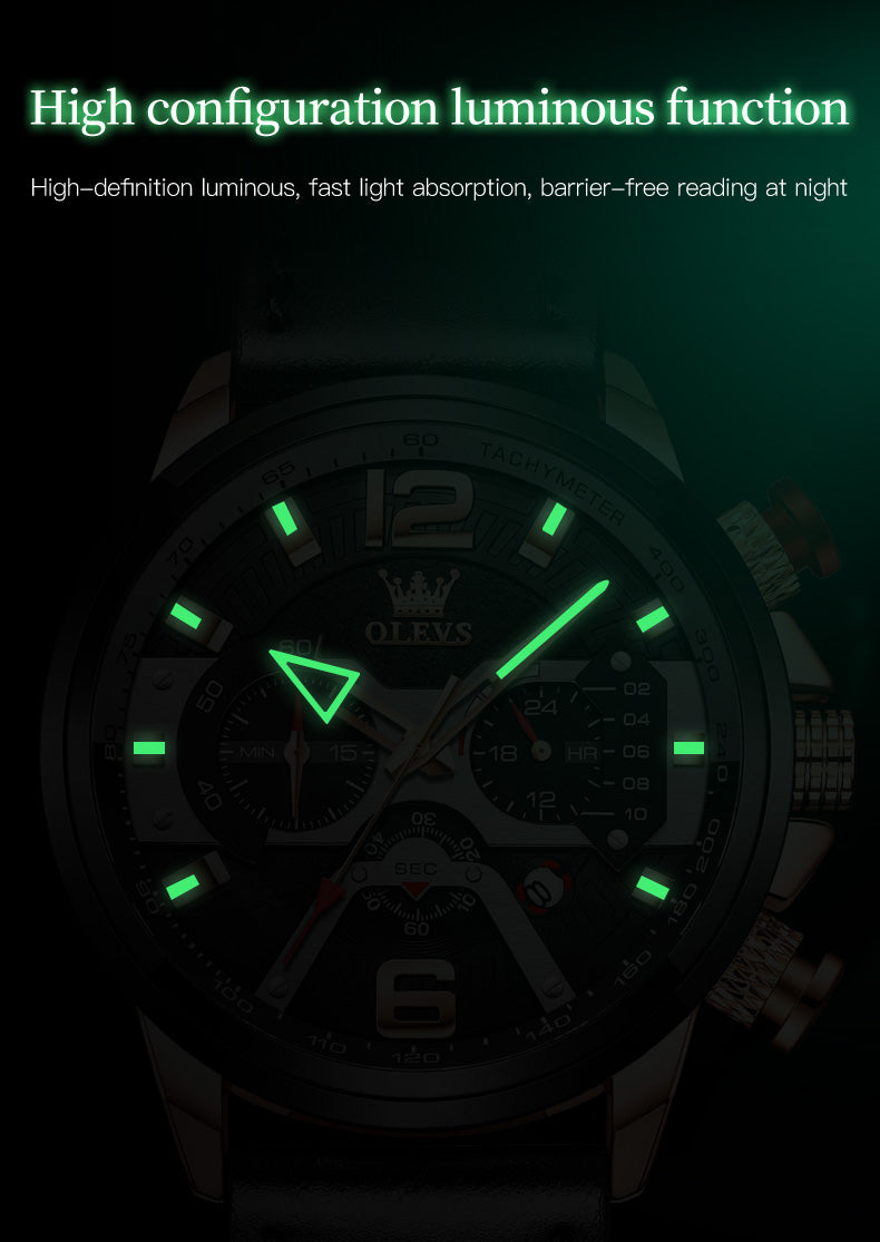 Aiigift Three-eye Timing Large Dial Waterproof Calendar Men's Watch