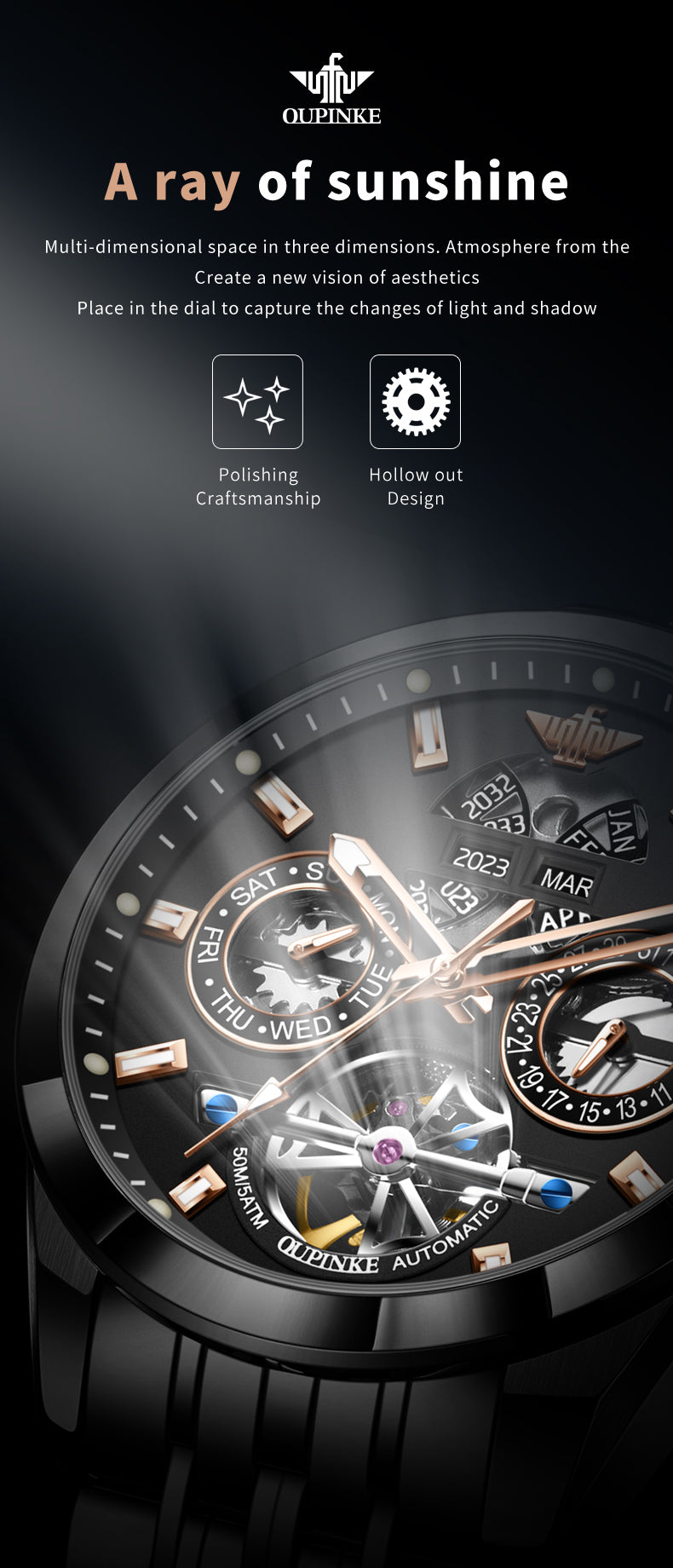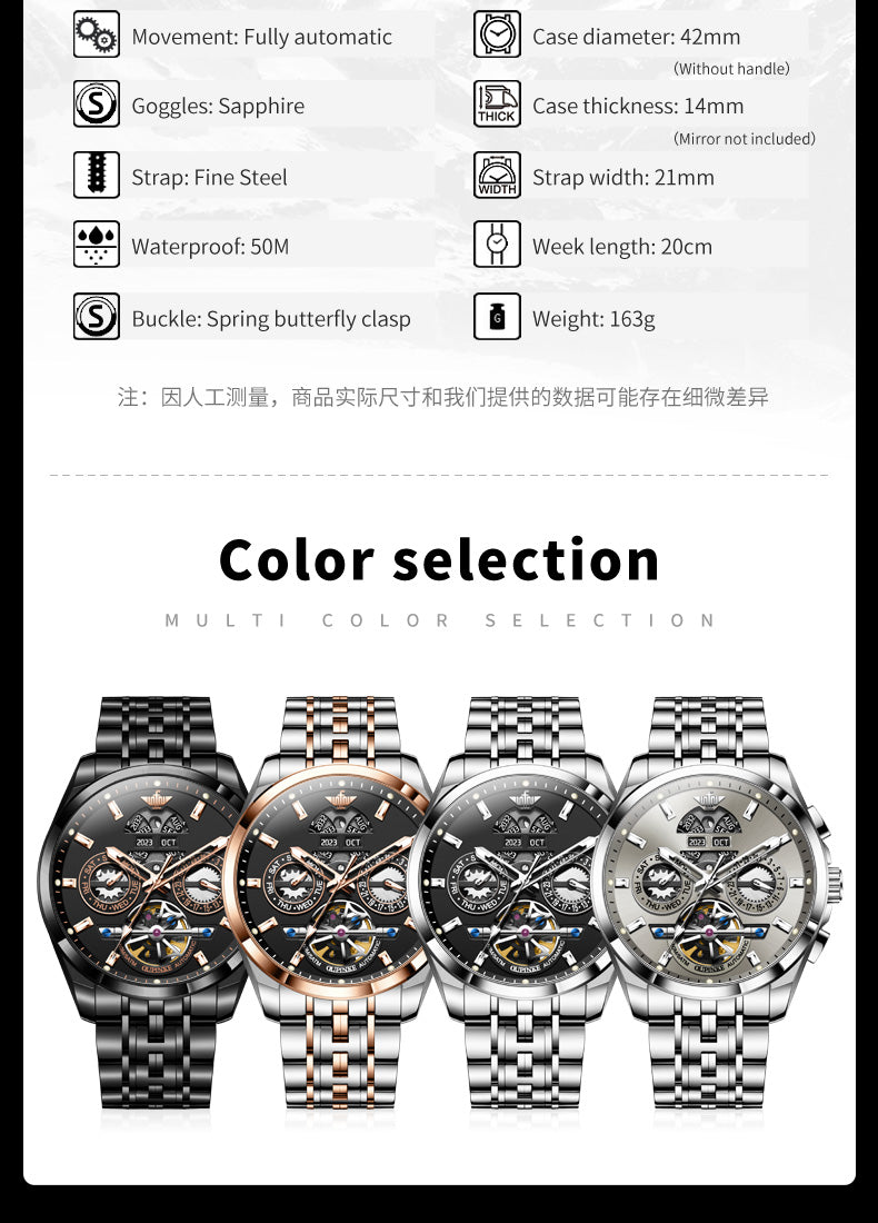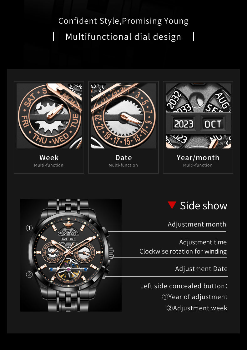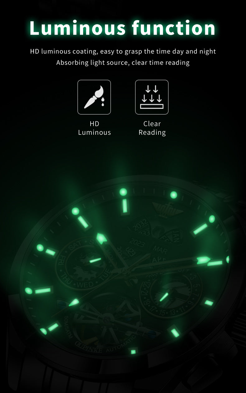 Light Luxury Trend Waterproof Glow-in-the-dark Multi-functional Full Hollow Mechanical Watch