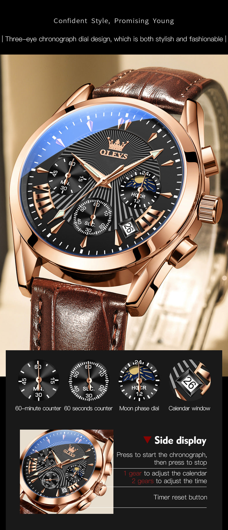 Multifunction Sports Timing Calendar Quartz Men's Watch