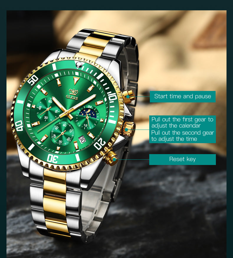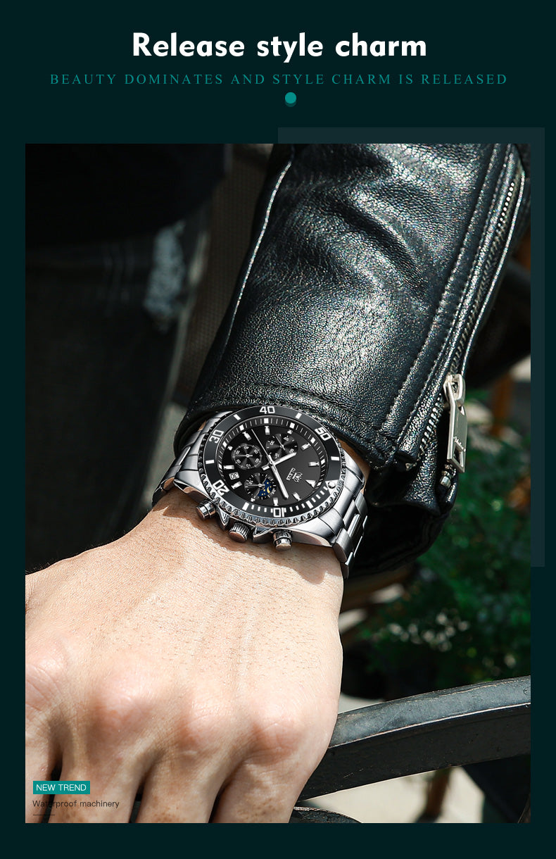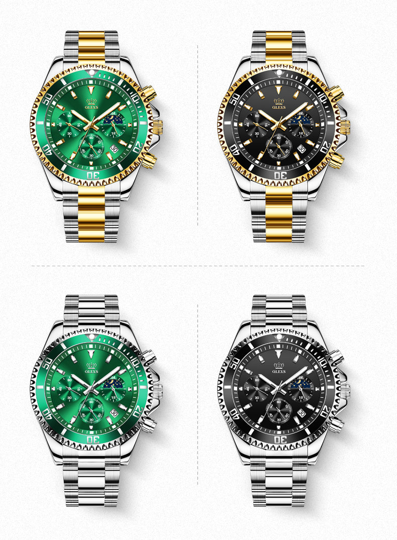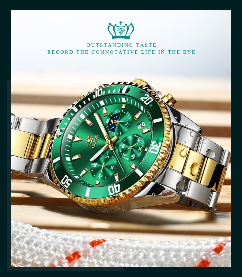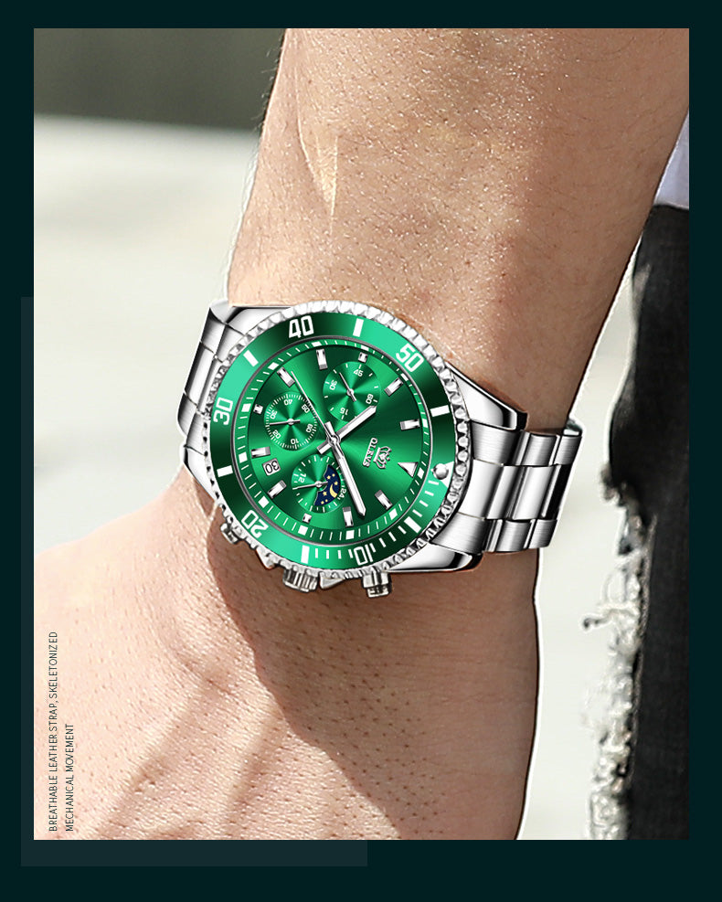 Multifunctional Chronograph Three Eyes Green Water Ghost Waterproof Men's Watch Quartz Watch