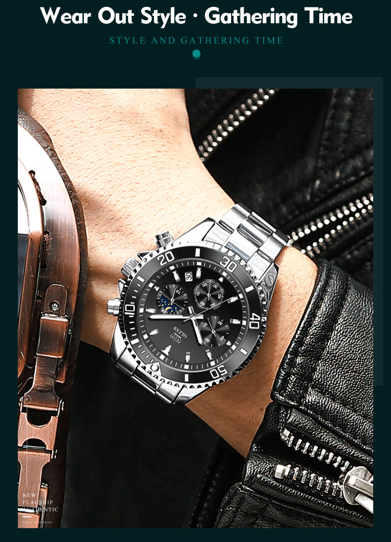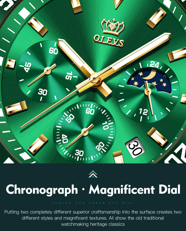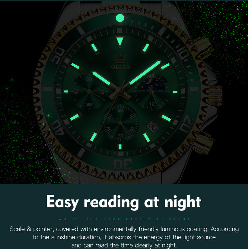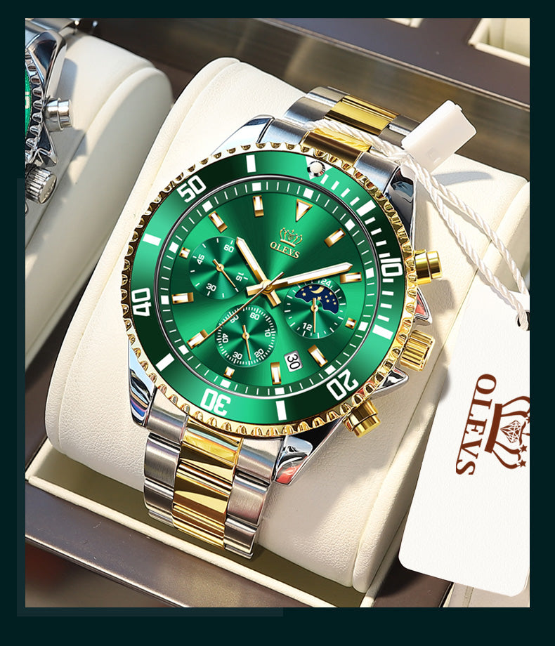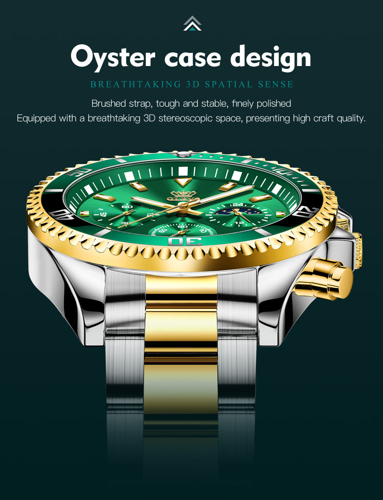 Multifunctional Chronograph Three Eyes Green Water Ghost Waterproof Men's Watch Quartz Watch