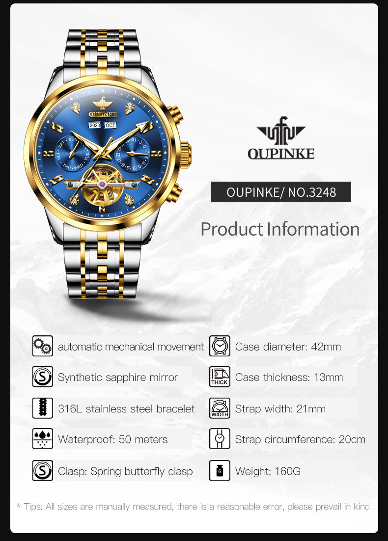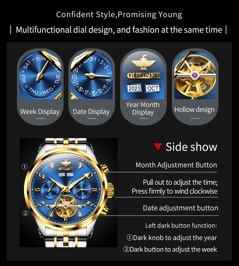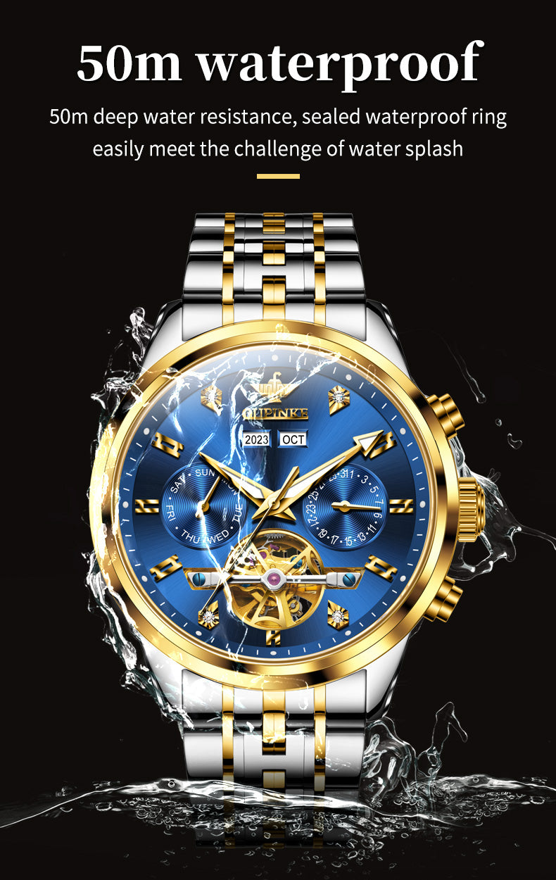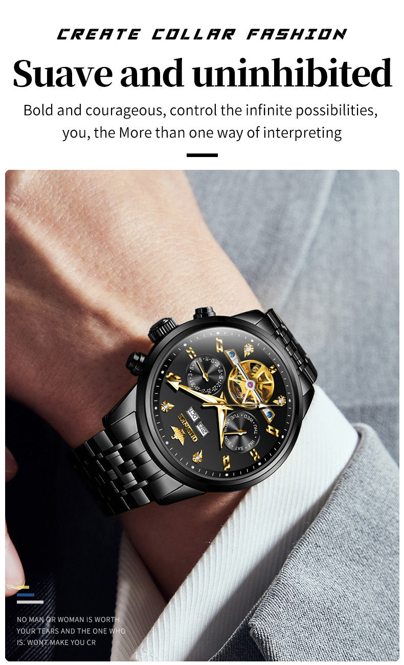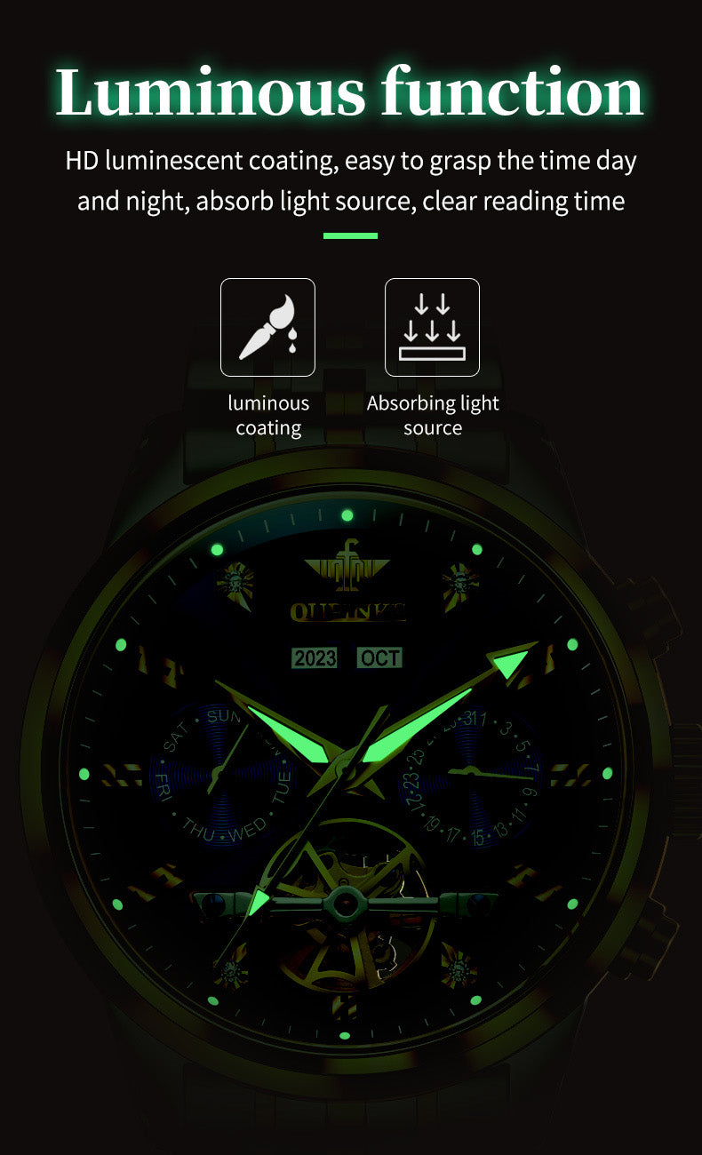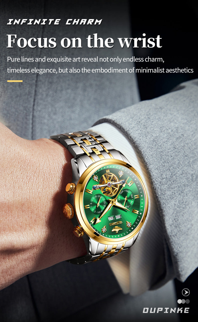 Wide Strap Mechanical Watch Green Water Ghost Business Men's Watch